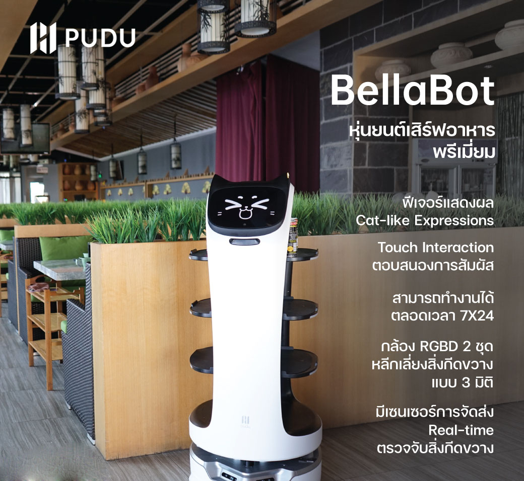 เราได้นำเข้าหุ่นยนต์บริการจาก PUDU เพื่อเพิ่มระยะ ห่างของคนในช่วง Covid-19